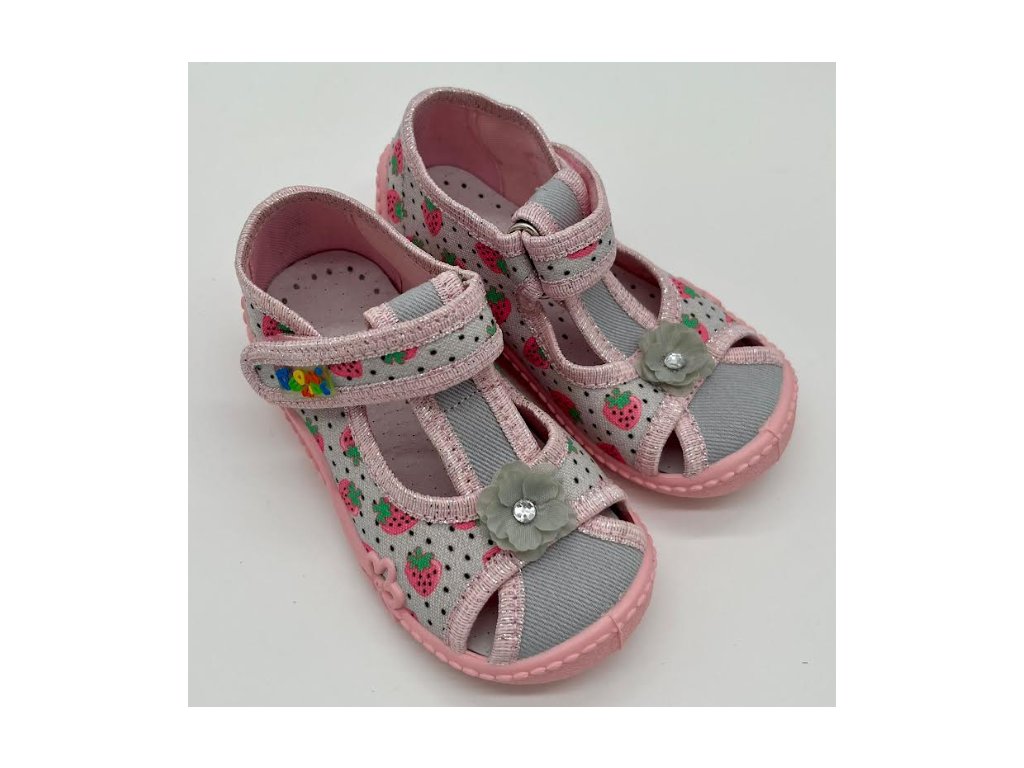 Dívčí papučky s jednoduchým upínacím páskem s kovovou přezkou. Díky vyvýšené pevné patičce, plné špičce a vyjímatelné stélce jsou botičky ideální oporou i pro nejmenší nožičky. Podešev je odolná proti uklouznutí a díky drobným otvorům v podešvi a vyjímatelné kožené stélce a vzdušnému střihu jsou tyto botičky dobře prodyšné. Vyjímatelná kožená stélka s aktivním uhlím proti bakteriím a lehkou podporou podélné klenby zajistí hygienické a zdravé obutí.