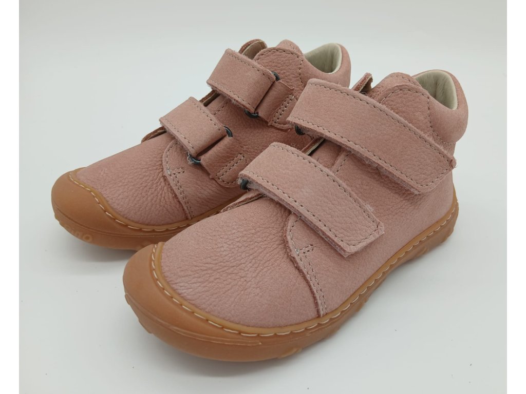 Kožené botky barefoot vhodné na první krůčky dítěte. Velmi oblíbený model rakouské značky Ricosta. Vyjímatelná kožená stélka. Suchý zip pro lepší utažení kotníku, vhodná na střední až úzké nožky. Velmi ohebná a flexiblní podrážka. Praktický okop v prstové části.