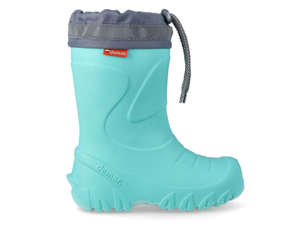Dětské zateplené holínky demar MAMMUT s extra lehkým materiálem jsou ideální pro deštivé podzimní a zimní počasí. Mají hrubší protiskluzovou podrážku zajišťující bezpečnost chůze. Na obuvi je bezpečnostní reflexní pásek pro dobrou viditelnost dítěte ve tmě. Na svršku je zatahovací nástavec na tkaničku proti padání nečistot do holínky. Holínky MAMMUT poskytují vynikající uživatelský komfort a to i při velmi nízkých teplotách, což bylo potvrzeno zkouškou v kryogenické komoře.